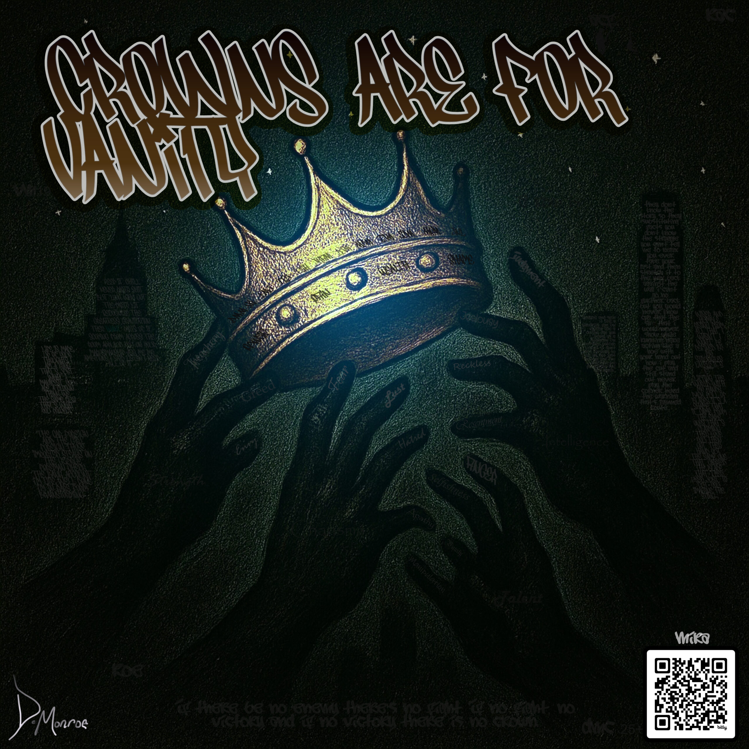 Crowns are for vanity, as a whole is built on this kind of self-awareness. With each track produced by a different collaborator—including Lexi Banks, Dreamlife, and DopeBoyzMusic—the album intentionally refuses to settle into one aesthetic. Guest features from RealasChris and Chief Mazi add dimension without ever distracting from Monroe’s core narrative. The throughline is emotional clarity, delivered with lyrical precision and wrapped in sound that moves from atmospheric to visceral.
